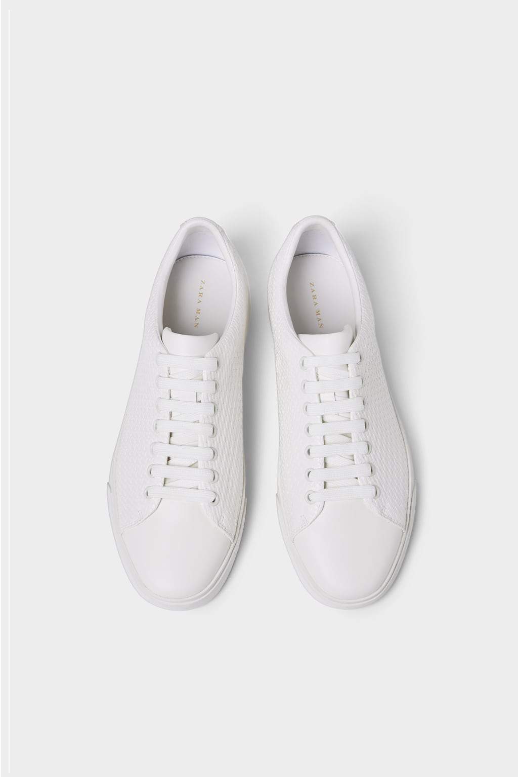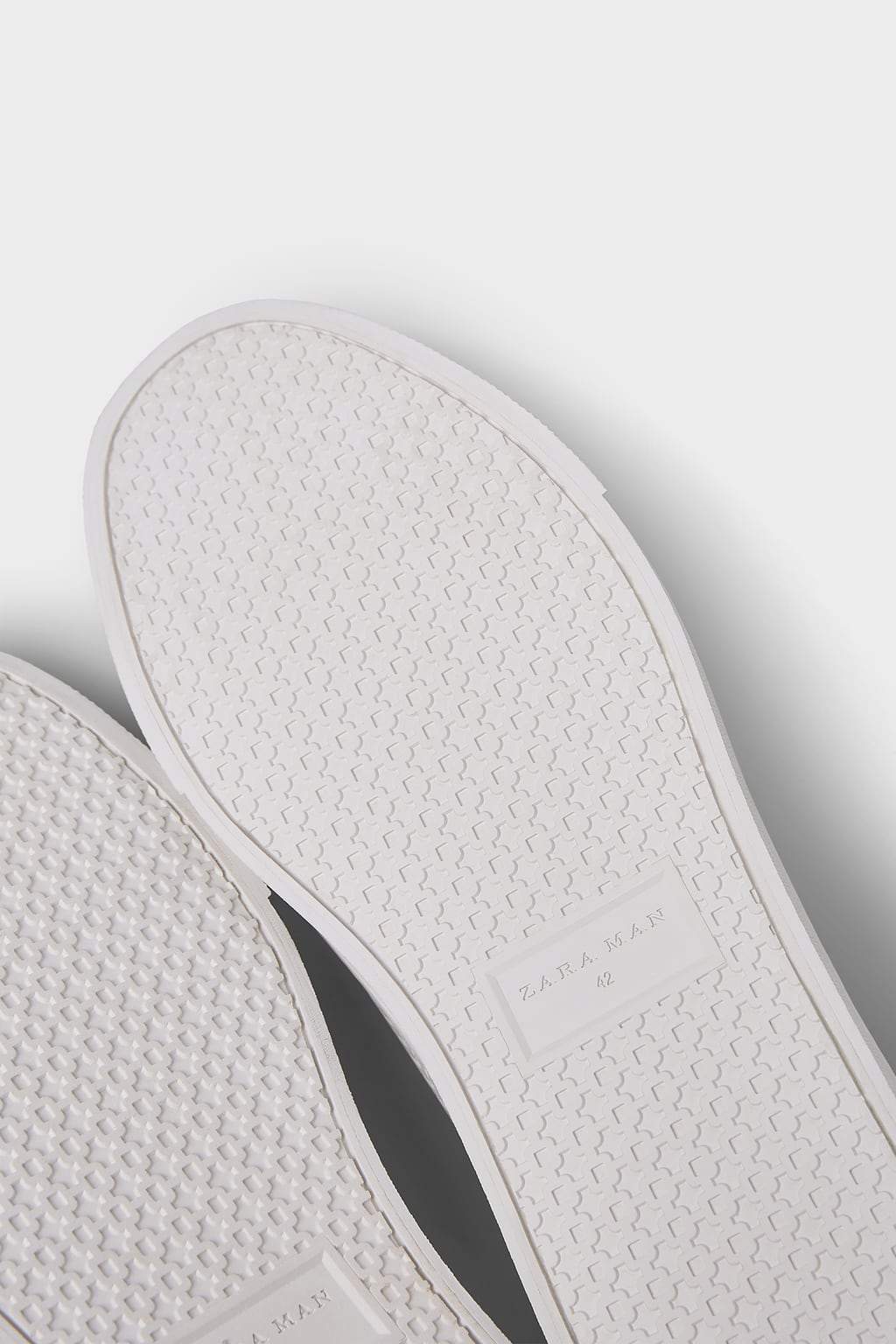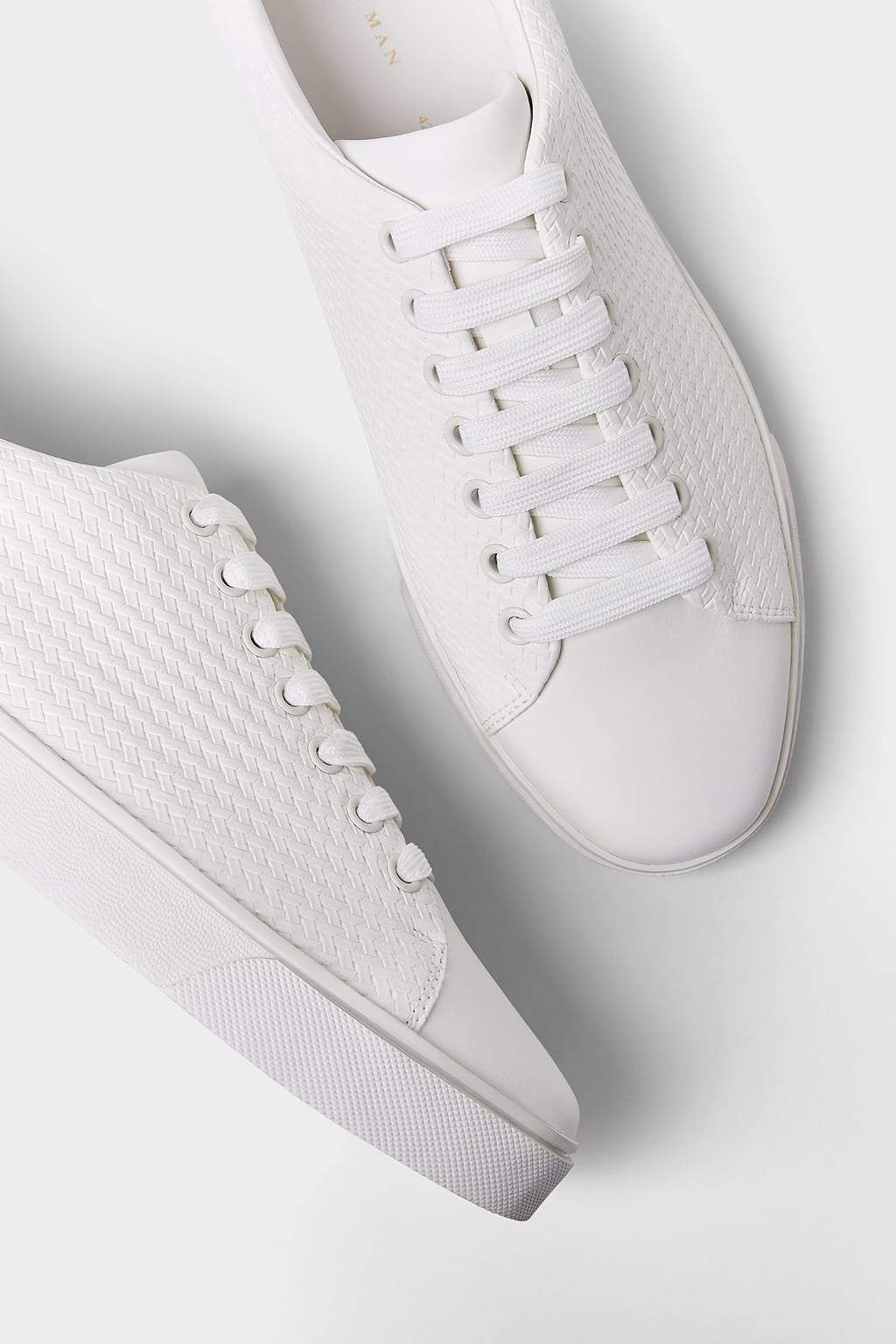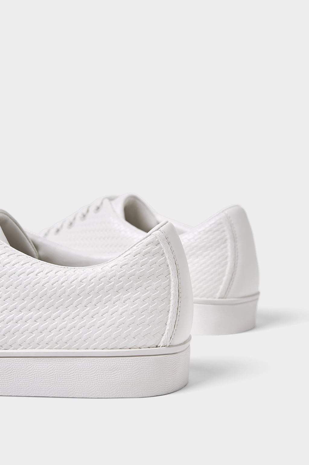 Plimsolls. Seven-eyelet facing. Embossed detailing on the upper, except for the toecap and the heel. White soles.